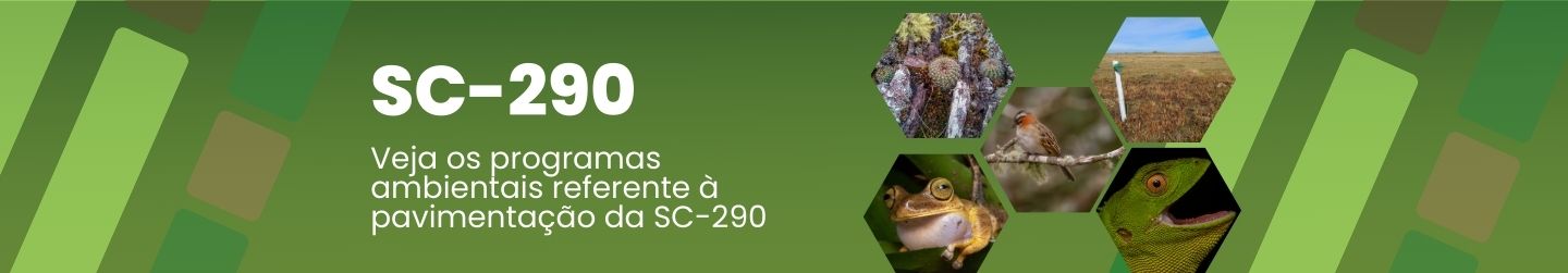 A obra de pavimentação da SC-290 é um marco para a região extremo Sul de Santa Catarina e fomentará o turismo em uma das regiões mais belas do estado. Porém, a pavimentação da obra deve ser feita com um cuidado especial ao meio ambiente, pois a rodovia passa por uma área ambiental muito sensível, com rara biodiversidade e entre dois parques nacionais. Portanto, no âmbito do processo de licenciamento da obra, a SIE executa o plano básico ambiental com 18 programas ambientais que consistem em um conjunto de ações destinadas a monitorar, controlar e reduzir os possíveis impactos ambientais sobre o meio físico, biótico e socioeconômico da região de implantação da rodovia. A página em questão tem como objetivo apresentar os programas ambientais realizados pela Secretaria, assim como as atualizações dos mesmos.